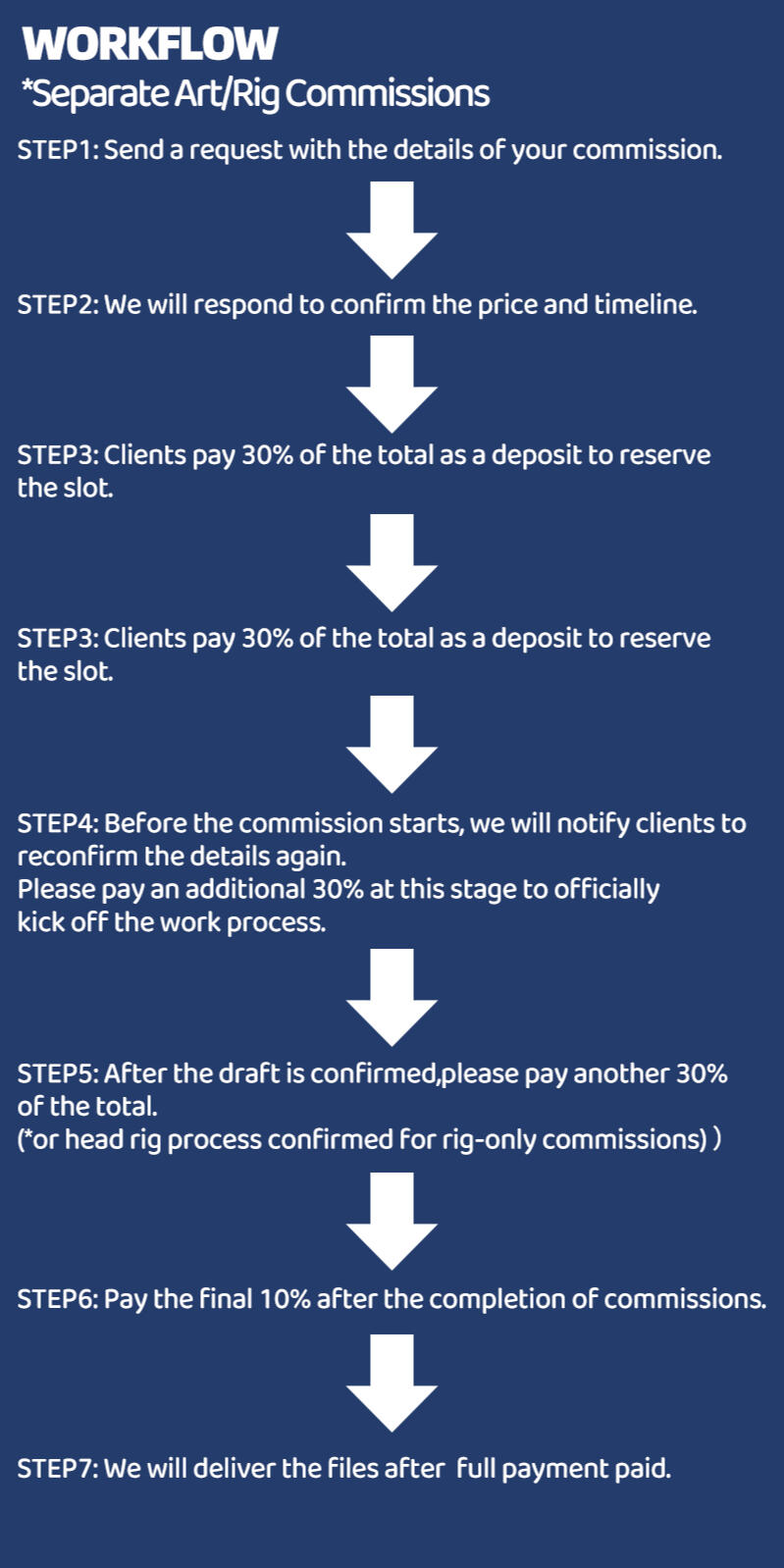 -Thank you very much for your trust and choice. Before sending a commission request,Please confirm that you have read with our commission information (such as teammates, pricing, status and TOS)